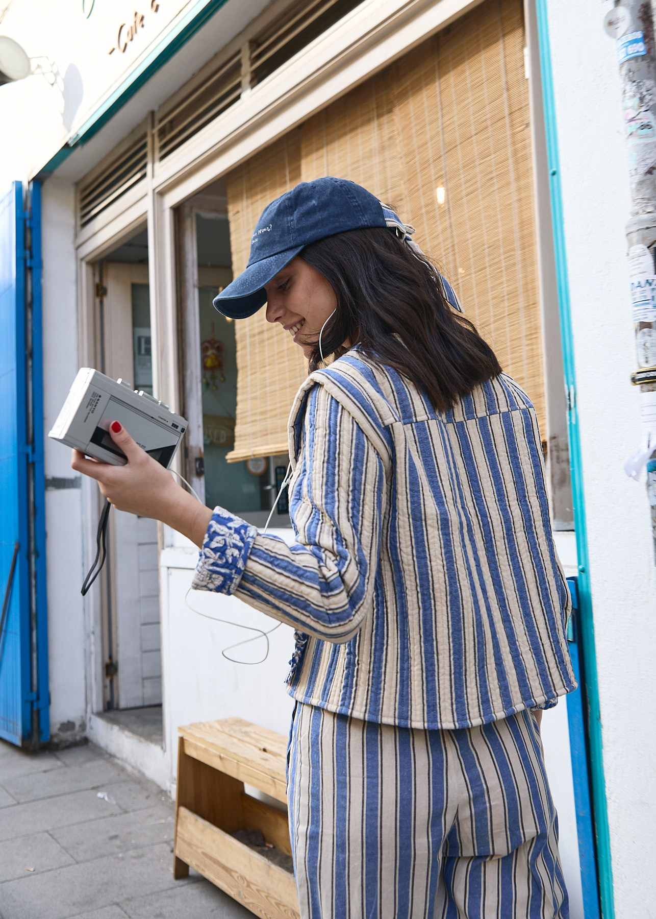 This lightweight quilted jacket, with shoulder Details, patch pockets and a fabric mixing stripes and subtle contrasting prints, is perfect for days when you need a layer without feeling too wrapped up.