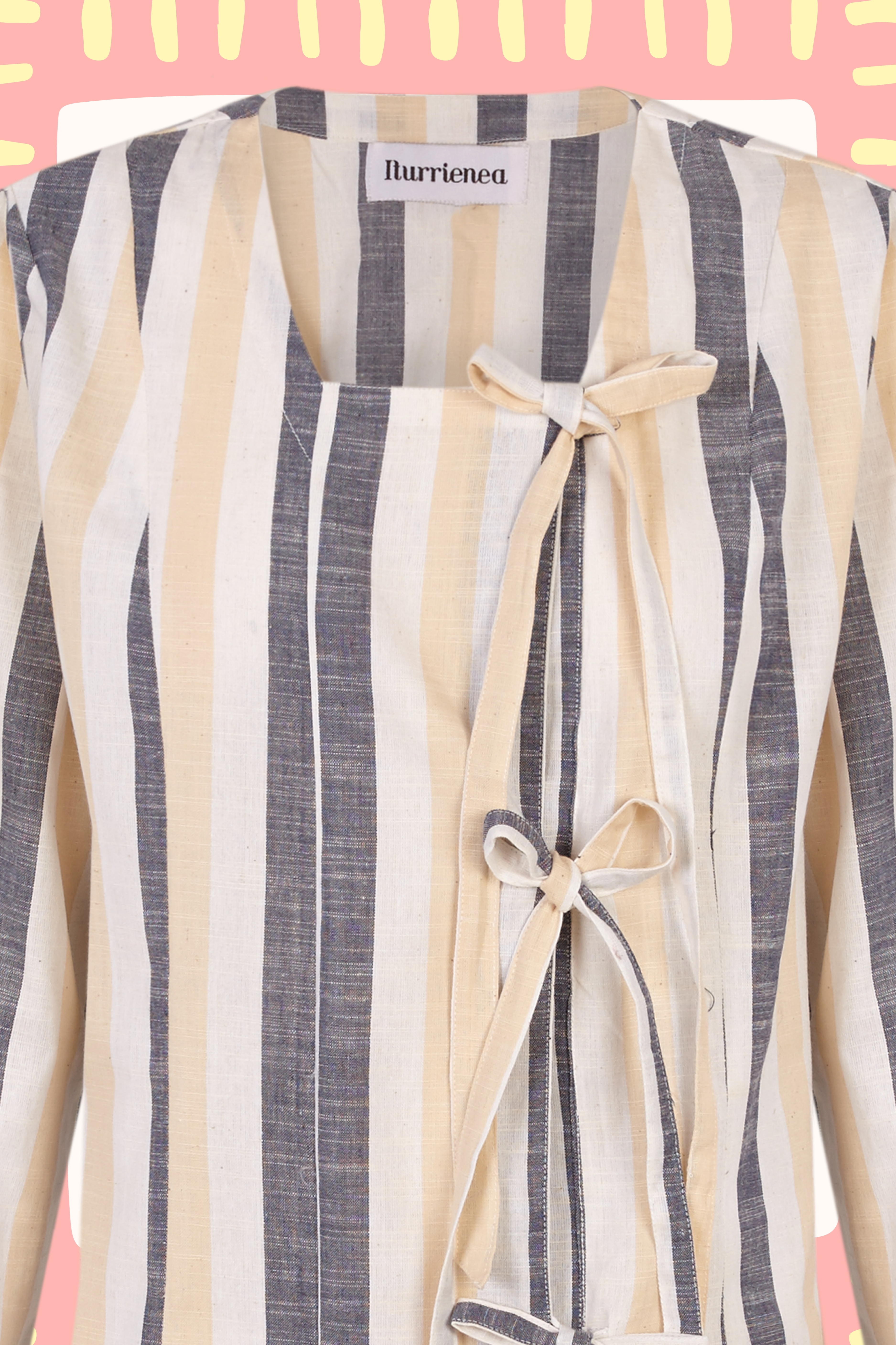 Las rayas suelen ser disciplinadas, pero esta blusa no lo es tanto.
